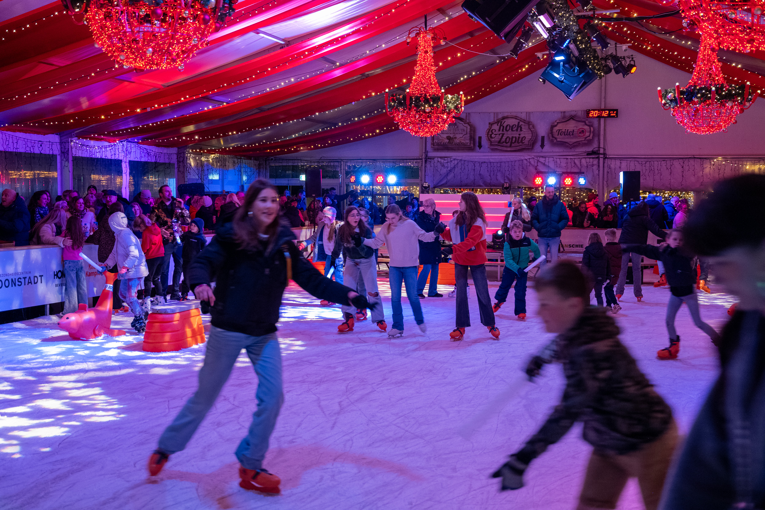 Vrijdagavond is het tijd voor Discoschaatsen. Vanaf 18:30 uur verandert de ijsbaan in een kleurrijke dansvloer op ijs, met flitsende lichten, opzwepende beats en een feestelijke sfeer.